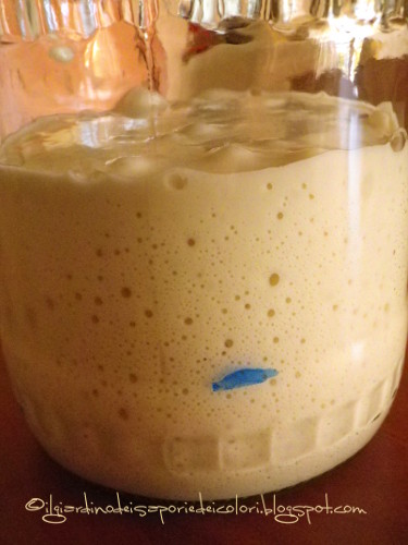 Nonostante le bolle in superficie non è lievitato, sembra senza forza..più liquido ma ho rinfrescato ugualmente.