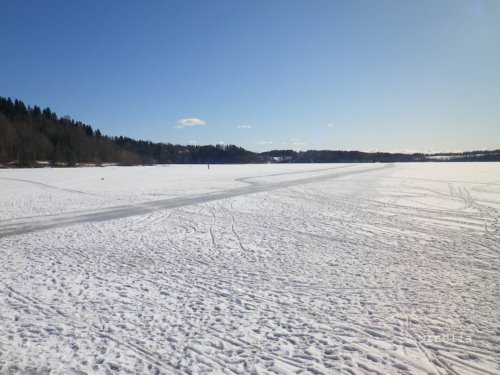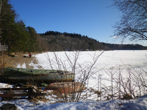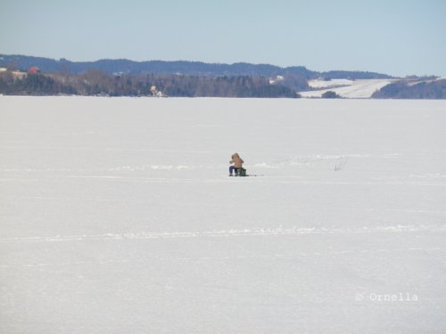 Ma la cosa più sorprendente è stata quella di scoprire che c'erano gruppi di famiglie che facevano picnic sulla "spiaggia" a -8°C e poi si divertivano a sciare, a correre sopra i metri di ghiaccio del lago..Io non ho avuto il coraggio di camminarci sopra ma nemmeno di rimanere oltre i 10 minuti. Ma come faceva quel temerario pescatore a restare fermo, seduto nel bel mezzo dello specchio di ghiaccio?