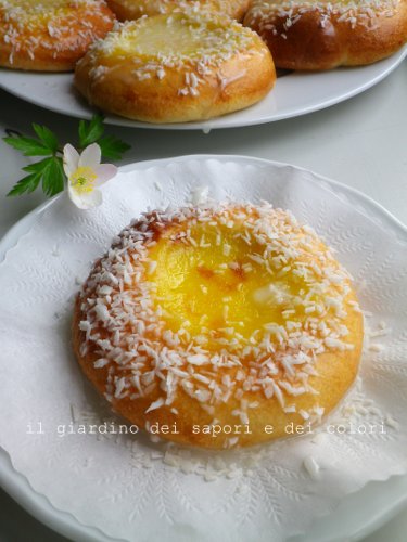 Sono così belle queste briochine che sembrano eteree. Sono con gli occhi incollati allo schermo, quella “nevicata” di cocco è come la ciliegina sulla torta. Mi ispira un sacco quella crema al mandarino senza uova. Deve regalare un gusto davvero unico. Bacioni tesoro, buona giornata