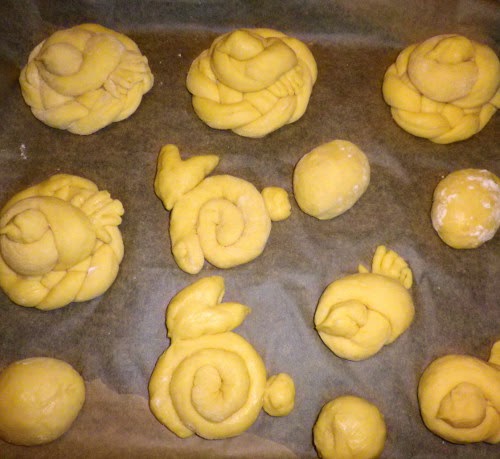 Io ho usato l'impasto base nr.5 della Cuochina per preparare quelli che volevano essere, pulcini, uccellini nel nido, coniglietti..ma che sono diventati un po' troppo gonfi perdendo un po' la forma iniziale. Sono deliziosi ugualmente.
