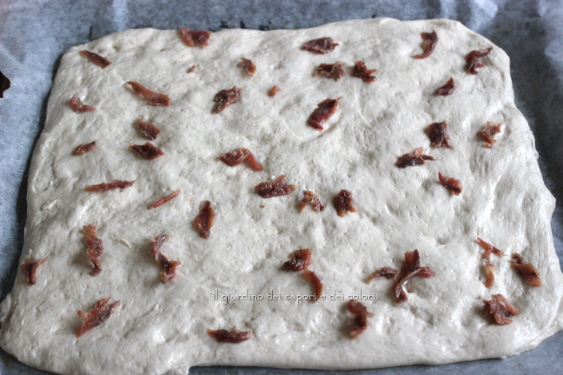 A questo punto ho spezzettato le aggiughe sopra lo sfincione,