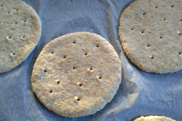 Mettere i dischetti ottenuti a lievitare fino al doppio dello spessore. Bucherellare con uno stecchino, infornare a forno preriscaldato a 200°C per circa 10 minuti, dipende dal forno.