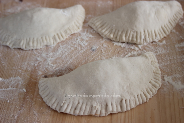 Li ho chiusi e sigillati bene con l'aiuto di una forchetta. Ho scaldato l'olio e, non appena è arrivato a temperatura, ho fritto i panzerotti per qualche minuti da entrambi i lati.
