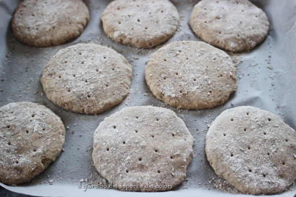 le ho stese un po' con le mani e le ho disposte sopra la placca da forno ricoperta di carta da forno