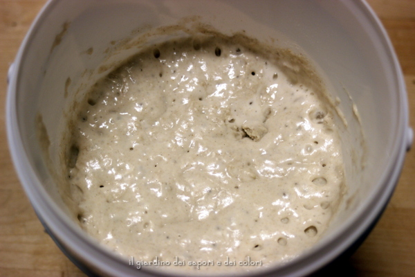 *** Ho rinfrescato licoli, la prima volta, con la manitoba. A lievitazione più del raddoppio ne ho preso circa 80 g e l'ho rinfrescato nuovamente con 80 g di acqua e 80 di farina di segale macinata fine. Nella foto sotto lo si vede pronto.