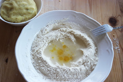 Ho impastato a lungo farina, olio e acqua quanto basta per ottenere l'impasto adatto per la sfoglia. Messo a riposare coperto con la pellicola per mezz'ora.