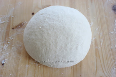 Ho fatto una palla e l'ho messa a lievitare in una ciotola leggermente infarinata, coperta con un po'di carta da forno e poi un foglio di plastica per alimenti,(io taglio un sacchetto da 5lt di plastica e uso quello) per circa 4 ore al caldo. In questo periodo abbiamo circa 30°C in casa..per cui è stra-lievitato..