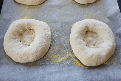 Fatto questo, con la punta delle dita, ho fatto una pressione al centro formando i bialy. Questo video aiuterà senz'altro a capire meglio.