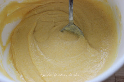 Impasto: in una ciotola sciogliere il burro in microonde, unire lo zucchero. Aggiungere rapidamente l'uovo e mescolare bene. In un'altra ciotola mescolare il latticello con il bicarbonato. In una ciotola capiente unire la farina di mais, la farina debole, il sale ed il composto con l'uovo ed amalgamare bene, quindi il latticello e continuare a mescolare per far sciogliere tutti i grumi.