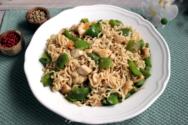 in compagnia di Cuochina, Anna e Ornella, siamo tornati in Giappone, per preparare un'altra squisita ricetta (Niwatori mune niku to pīman no hiyashi chūka) Ramen freddi con petto di pollo e peperoni verdi. Da fare e rifare molto spesso!! Grazie Cuochina!