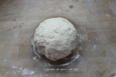 La sera precedente ho preparato la biga, impastando velocemente licoli con l'acqua e la farina. E' un impasto duro ma non bisogna aggiungere acqua.