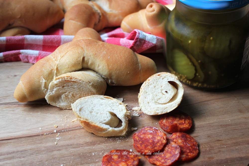 Si può dire che ho iniziato a mangiarla, anzi a succhiarla, quando ancora non mi erano spuntati i denti! Si perché i"corni" della ciòpa sono abbastanza duri e difficili da spezzare. Diventata più grandicella, facevo un buco al centro del "corno", lo riempivo di zucchero ed era la mia merenda. Oppure prendevo un pezzo di formaggio come companatico, di quelli gustosissimi e ricordo anche un po' troppo salati, che faceva il nonno. O la famosa sopressa veneta, che non mancava mai sulla nostra tavola. Ed infine i sottaceti che mia madre preparava in quantità industriale, ed erano di un buono..anche se ti facevano venire le labbra bianche, cotte per l'aceto.