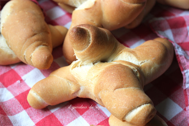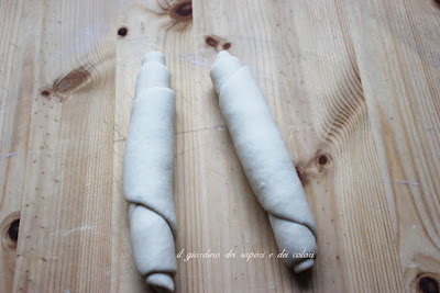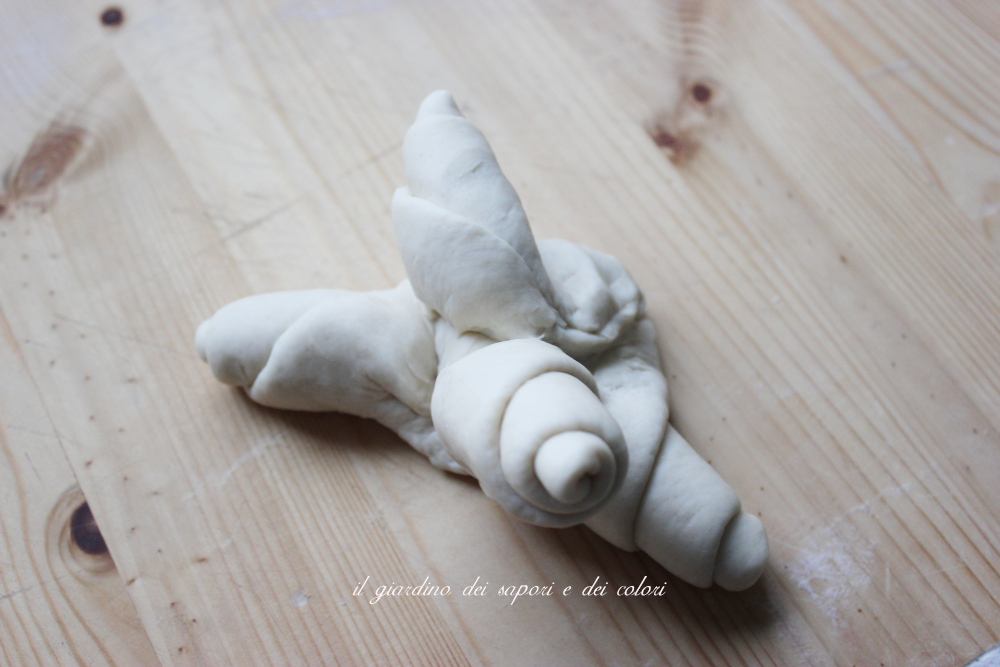 Unire insieme due panetti e stringendo alla base far salire in alto i "corni" , come nella foto.