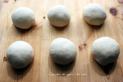 Modellare 12 palline di circa 95 g cadauna, coprire e lasciar riposare, coperte, per mezz'ora.
