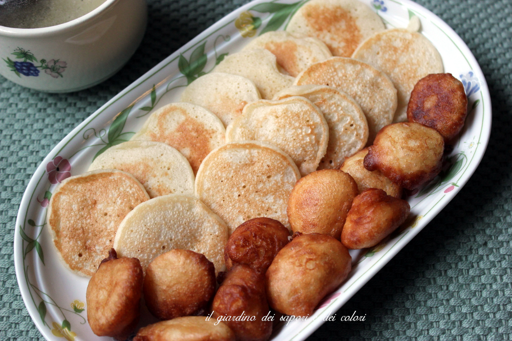 Non avendo la pentola adatta per cuocere questi deliziosi Mofo Gyasi, ho optato per la versione piatta consigliata dalla Cuochina. Però ho voluto provarli anche in versione fritta, così ho avuto anch'io la mia forma rotonda, o quasi.. Quelli piatti sono soffici, soffici mentre quelli fritti con la crosticina croccante, in entrambi i casi buonissimi.