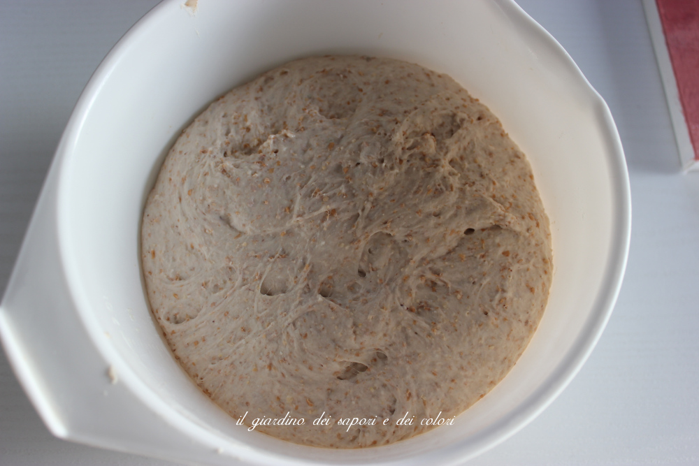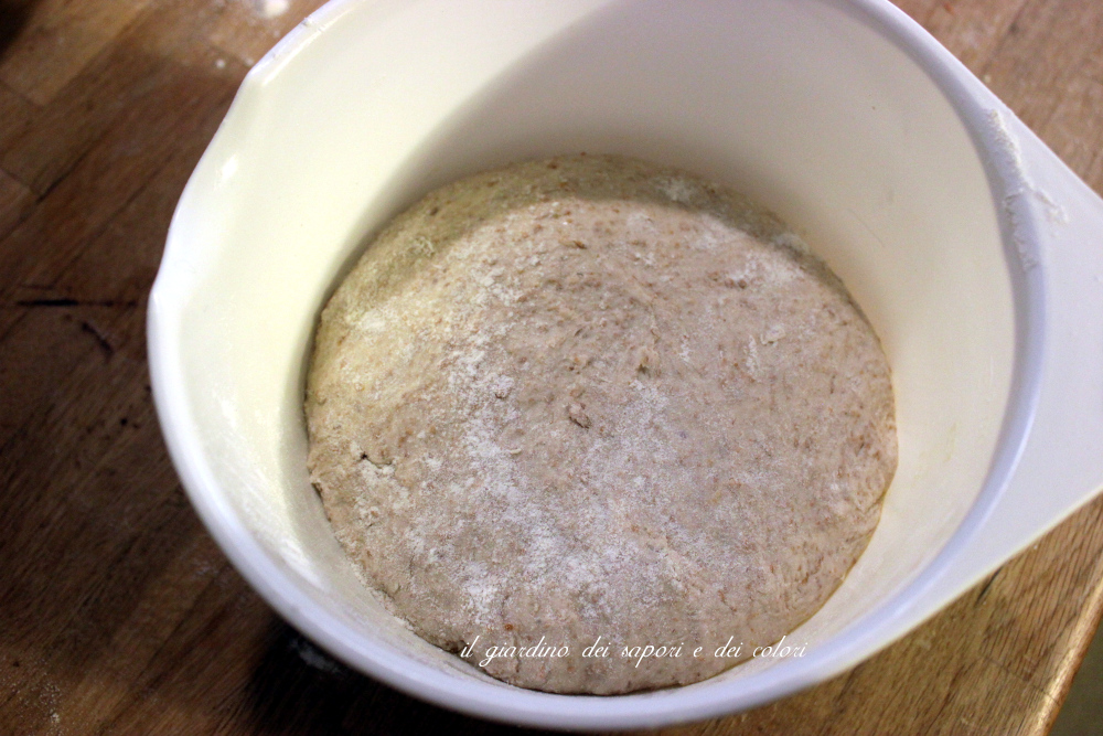 per circa due ore, operando delle pieghe ogni mezz'ora, prendendo l'impasto ai lati della ciotola e portandolo al centro. Dopo due ore circa l'impasto è raddoppiato